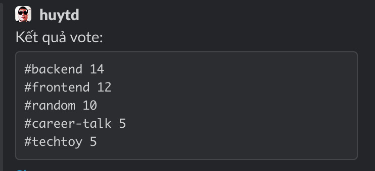 Như đã nhắc đến ở newsletter trước, tụi mình đã thống nhất setup một số channel có sẵn cho newbie. Và đây là kết quả sau khi voting ↓